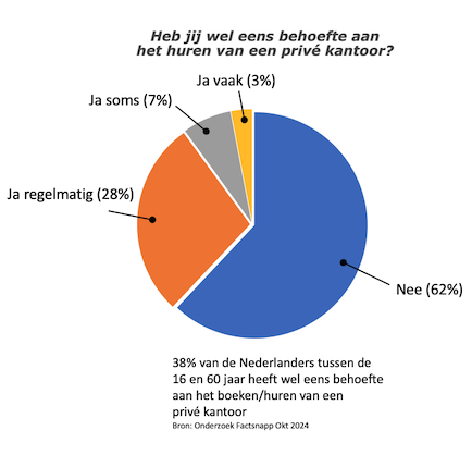 We hebben een marktonderzoek, onder de Nederlanders tussen 16 en 60 jaar, laten doen met de vraag 'Heb je wel eens behoefte aan een privé kantooruimte? '.