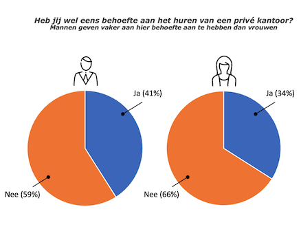 1] Bijna 40% van de respondenten gaven aan dat ze wel eens behoefte hebben aan een privé kantoorruimte.